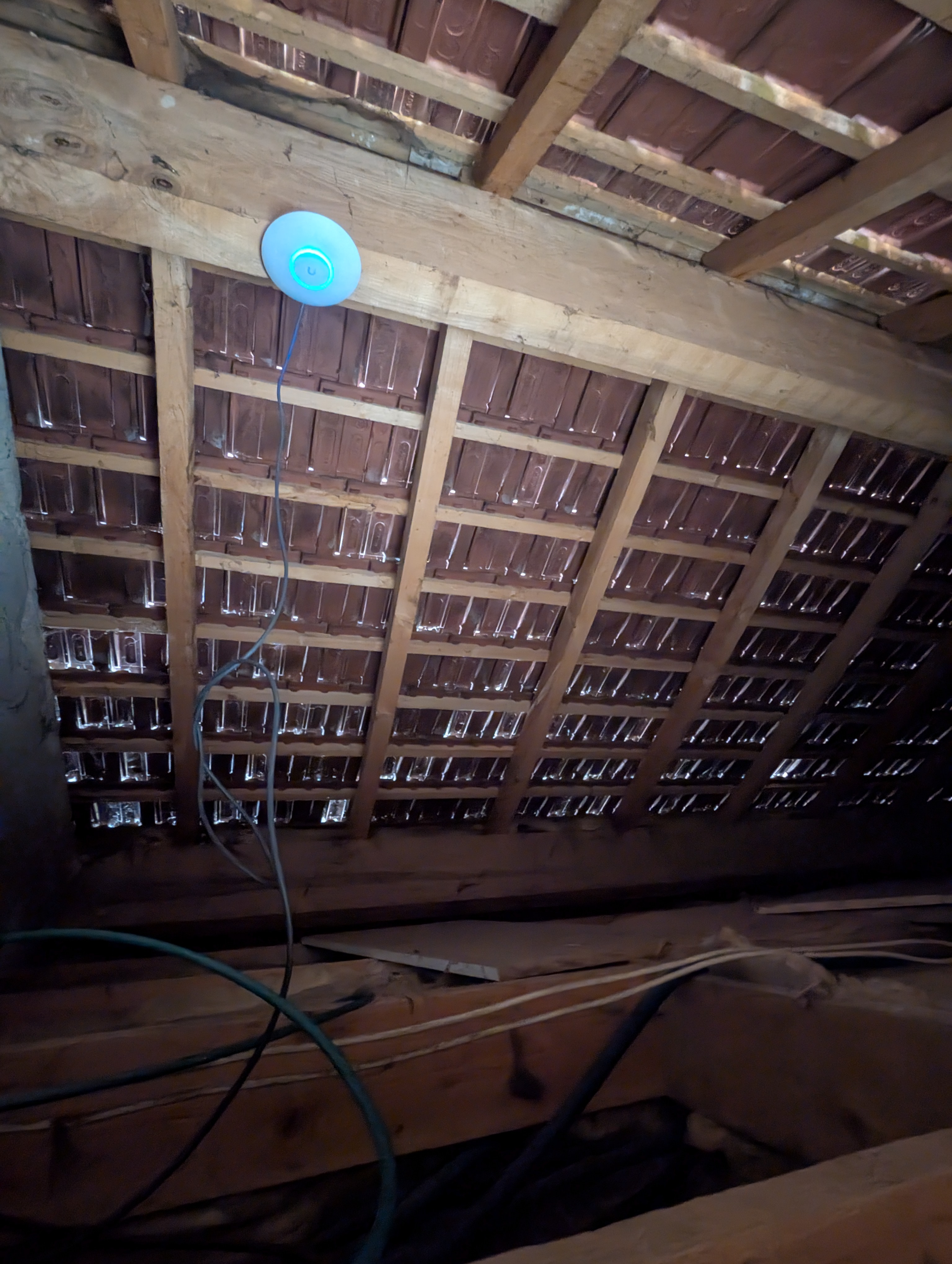 Une des solutions était de mettre le répéteur dans les combles, mais pas fan de la solution et en plus il aurait fallu une il faut une prise électrique. Et deja à cette époque le routeur commencait à yoyoter et donc j’envisageait une autre solution. C’est finalement un routeur OPNsense et une borne Unify U6+ qui viennent prendre le relai. Ca me permet en plus de dissocier routage et antenne wifi.
